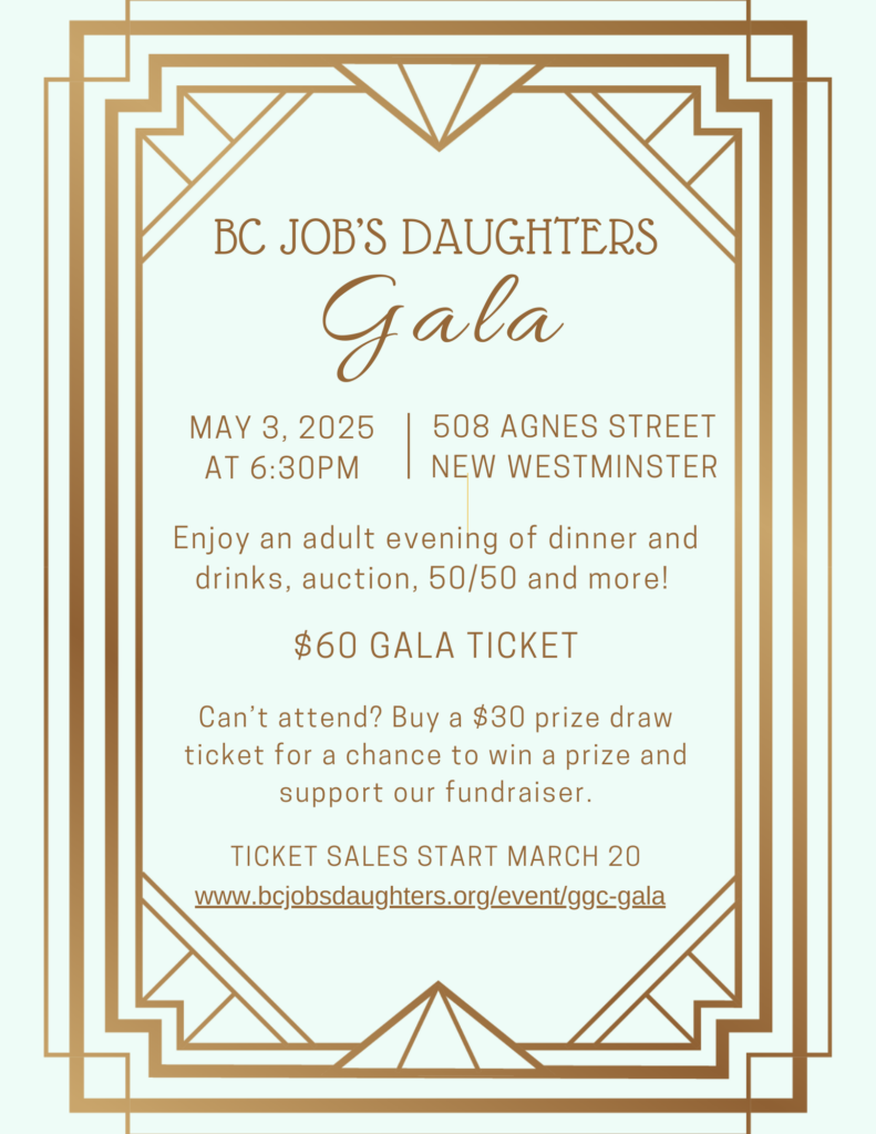 Dress in your best cocktail attire for a fancy night out with the Grand Guardian Council of BC Job’s Daughters!
